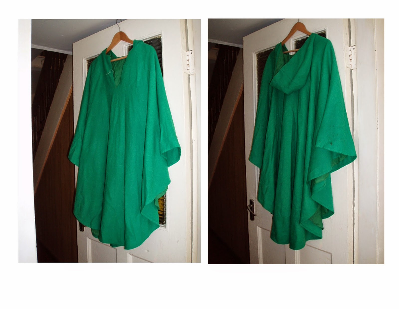When I saw this green cloak in the charity shop – I truly could not resist it.. It reminded me of the original Irish Air Hostess uniform. Its a full-on kelly-green woven wool cloak with hood. My feeling is that it was probably made for either a primary school play or float about St Patrick, and also made a long long time ago! With a cloak there is a natural progression to a kimono sleeve (I was given a cloak some years ago and made a jacket with sleeves from it, and it was only when I finished I thought the kimono sleeve …..)