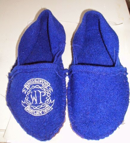 I tried out some slipper patterns, and found a very good tutorial online (link here). The first pair I used a school jumper and the sole was more jumper, 2 layers of curtain interlining, and a mock suede upholstery swatch I was also given a long time ago. The tutorial online, the maker used some wool insulation, which looked brilliant, but I haven’t a clue where it could be got.