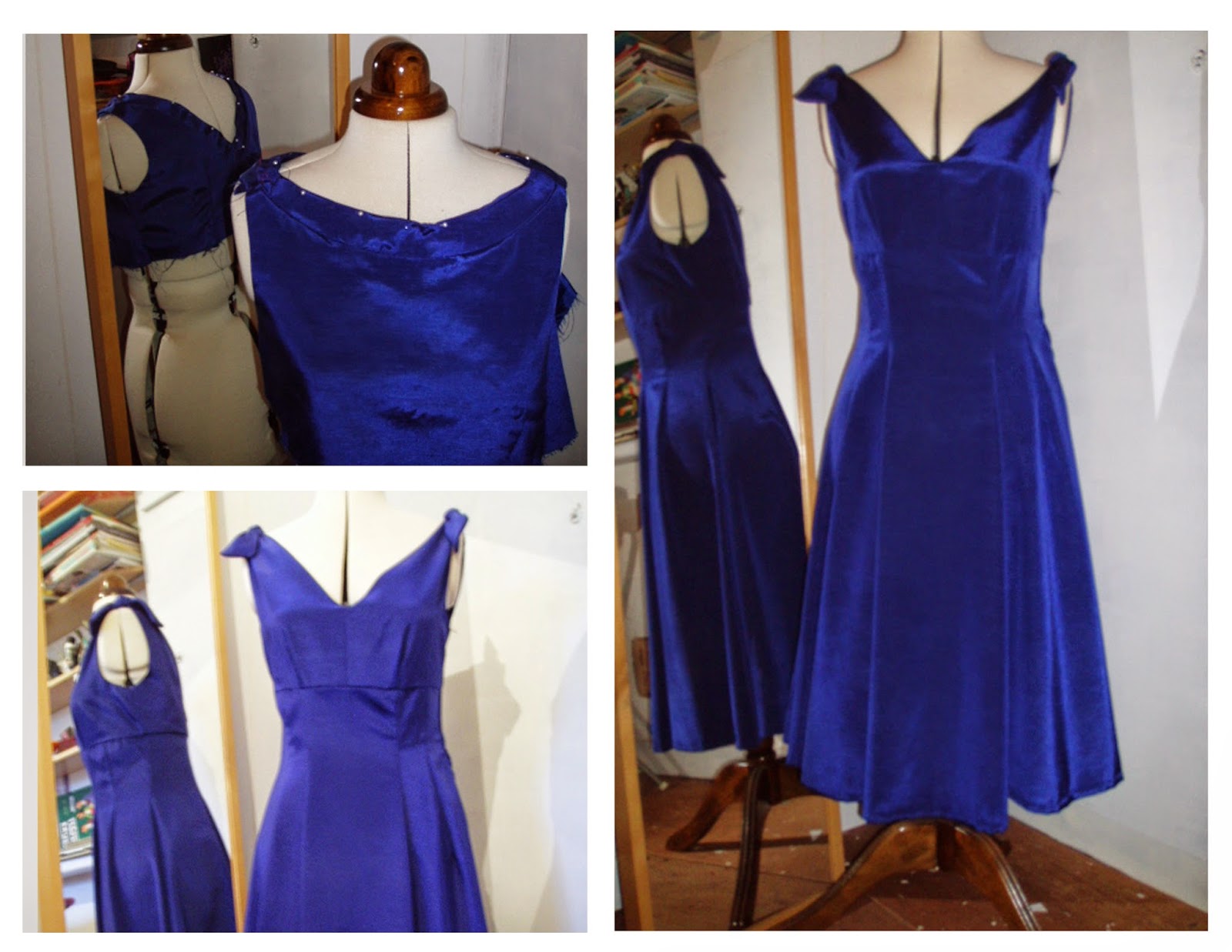 I had made a version (or toile) of the dress from a bed sheet, and the shape so so so flattering – this version is a bit bland and probably trim etc could lift it, I don’t think I will be trimming it, and have figured it could make a swanky set of PJs. The shape of the dress was sufficiently fab for me to be on the look out for some fabric because I really like the wider skirt . There was no way was I going to get the cut from an upcycle, so I got some grossgrain on a mark-down (and later found flaws – ick) and went with that. Its cotton grossgrain, so has a lot of body and limited give on the straight and too much on the bias. I thought I would try bodice A as I like boat-neck, but I didn’t like it for this dress, and there was enough fabric for Bodice B. I think if I was using bodice A again, I would also omit the v back – and not because it was a messy facing to do either!)