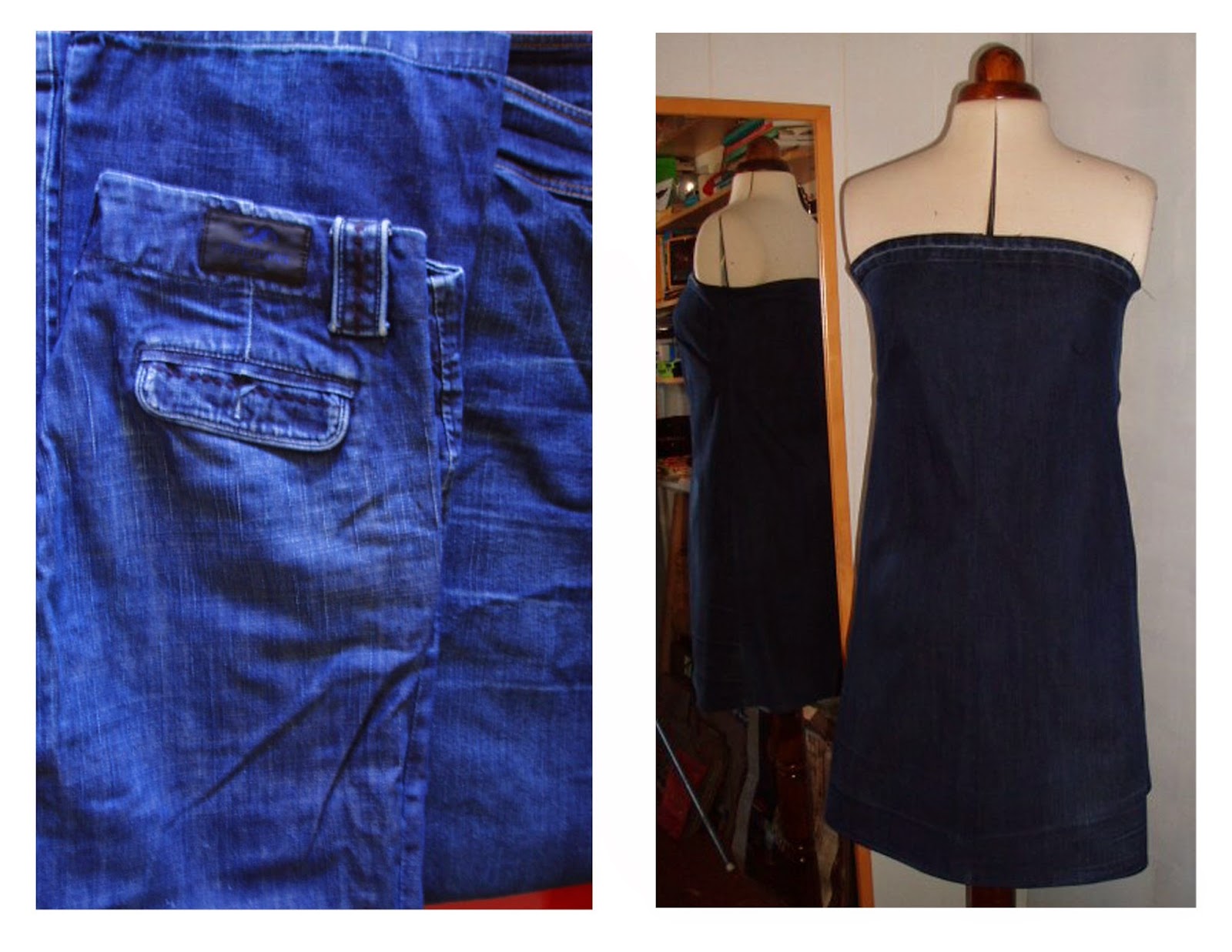 What a great idea! I have several pairs of jeans that my boyfriend was going to throw away but I couldn't bear it. A denim dress is perfect. Now my brain is going crazy with ideas. Thanks!