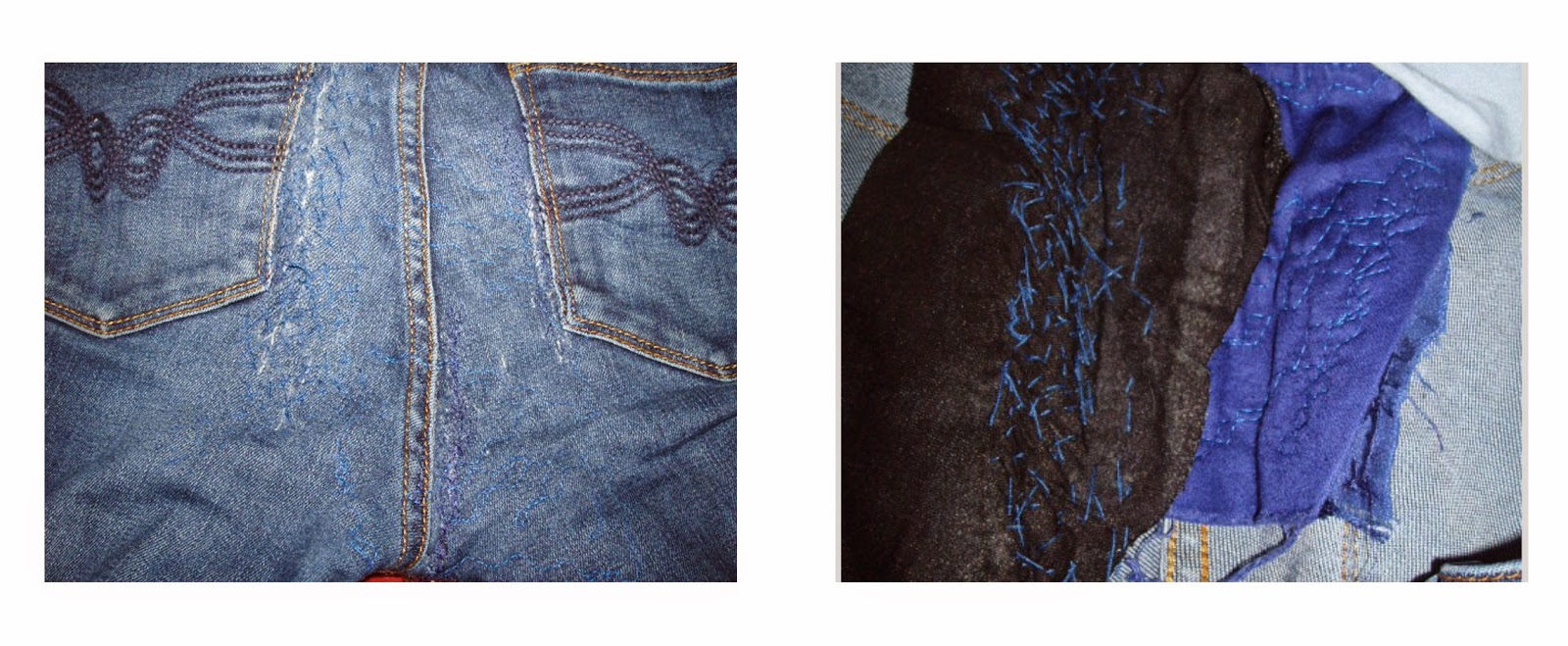 While this was going on, I have repaired my favourite jeans with sashiko mending (thanks to seeing it done by Karen, at RUDE) and its brilliant, I love the integrity of these repairs, its not trying to hide it, but makes the repair a thing in itself. I normally darn on the machine using a zig zag type stitch, but ultimately it doesn’t work that well with the stretch denim, I think it stresses the fabric more, so this time, I ironed black woven vilene (all I had) on the inside, stretching the jeans a little as I pressed, so the vilene had a wrinkle (deliberate) to accommodate the stretch. I then did some running stitch with button thread, but then started a type of cross stitch. What I did was a bit crude, but I love it. I really like the honesty of the hand stitch and its also a lot more sympathetic to the denim than the machine darn (I think) and its stronger as it moves with the fabric it a more sympathetic way. There are some gorgeous examples on pinterest, very inspiring!
