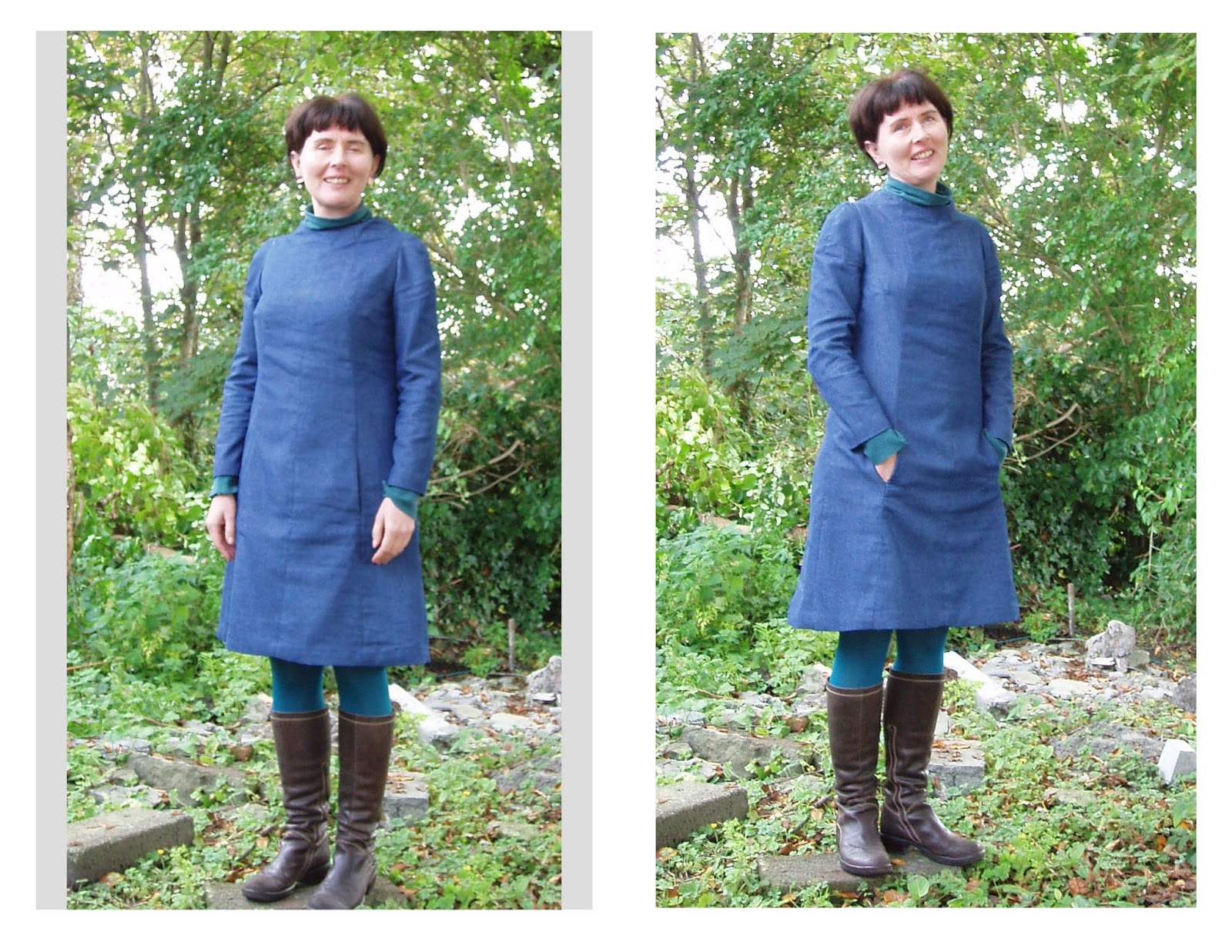 The lining was easier! The dress made up easily enough, I had anticipated a different look to the sleeves and I was unsure of them, the sleeve dart sits with the shoulder seam but the sleeve and dart seem to sit forward, I took the shoulder in another tiny bit, but its just the style of dress and now that I have been wearing it a bit, I love it (I had decided that I could always take the sleeves off if I was that bothered). The dress is very comfortable, and the pockets useful. I really like the subtle funnel neck. I had been thinking that if I was to try this pattern again, I would reshape the pieces, and redraft a sleeve that had a more defined line to make it a full raglan.