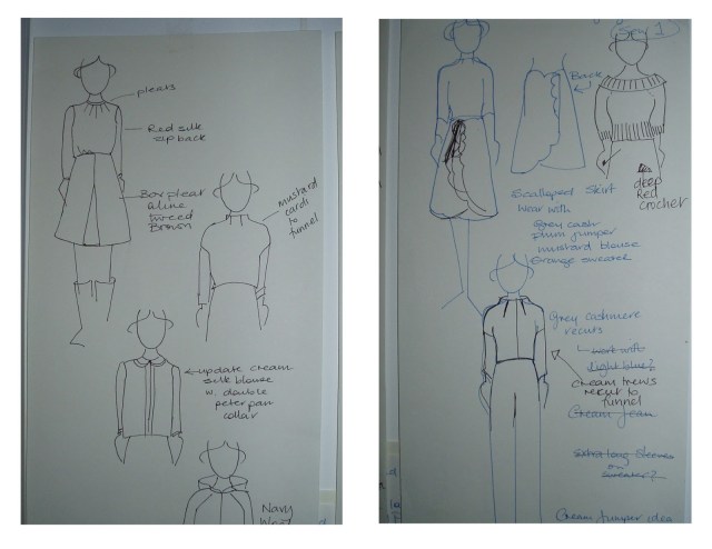 I love the window into your sewing world that your sketch book affords – my notebook is a lot less easy on the eye – I seem incapable of legible writing since the computer age dawned. I think the plum crochet top will look gorgeous with the grey scalloped skirt and it's inspiring seeing you plan what you envisage wearing with what – I'll be adopting that approach. Like you, I'm getting to the point where making my own clothes is so much more satisfying that buying them. I've lost all enthusiasm for clothes shopping – even vintage threads – as the whole process of planning, choosing fabrics, making and sporting my own makes has me firmly in it's web. I can't ever imagine getting to the stage you're at, where you completely re-imagine a garment from another. But I'm pretty happy with progress thus far – a girl just can't have too many smocks!! I've made another which I'm really happy with – just need to badger someone to take some pictures. And now onto planning my next few makes Eimear style!
