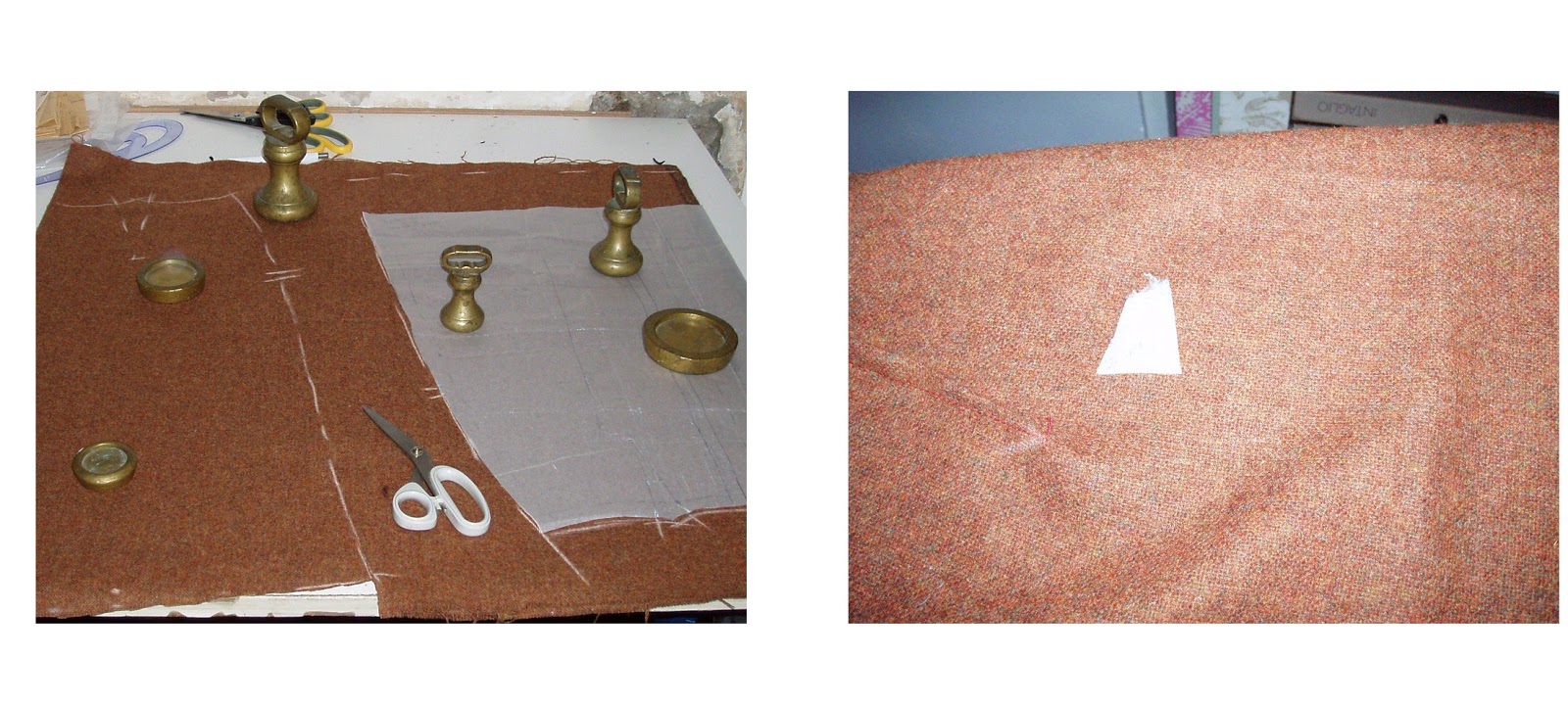 The day after I got the blouse, I was cutting out the denim dress (2 or 3 posts back) and ran into a spot of bother with the cut, so I went out for a stroll to think it out (rather than cut any further), and I strolled towards the charity shop. This tweed was in with some pillowcases, and about .75 of a metre, and 2euro. When I got home, I put it with the ‘pile’ and it looked so well with the blouse – that I figured I had an instant outfit. I had originally planned a box pleat skirt, but there was just slightly too little fabric.