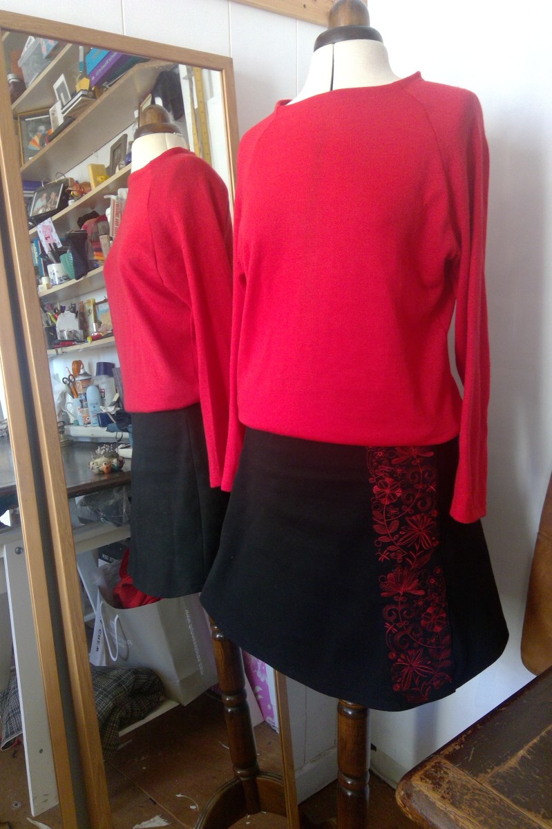 red sweater black skirt (1) Previous Next Published January 8, 2018 at 2176 × 3264 in 2 skirts and a red raglan sweater.