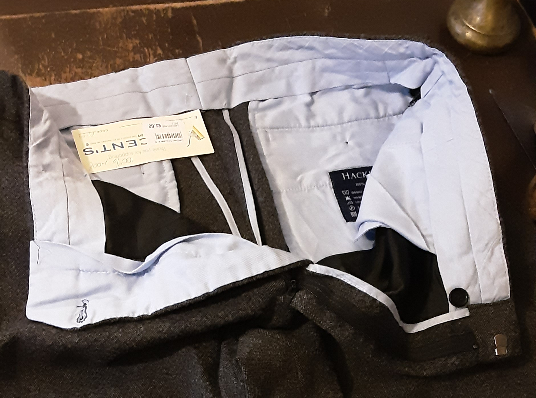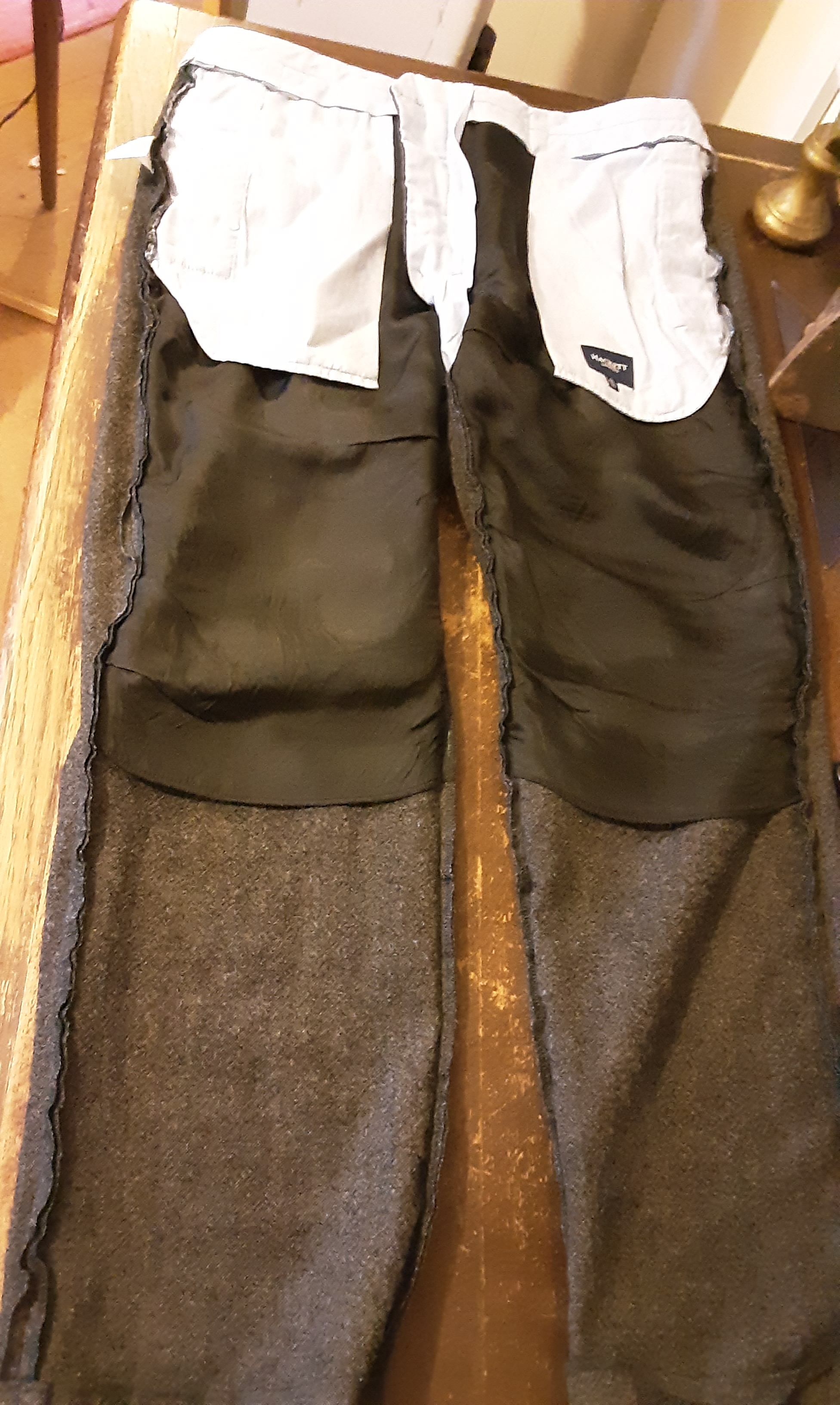 The day before the October lockdown, I had popped by a charity shop and saw a nice large womens herringbone tweed suit. I only had so much change in my purse and was 2 euro short of the price tag so I figured I could get it when the shop opened again – and sure enough I called to the shop about 3 days after the reopening in December, and it was not there! But I did find a man’s wool trousers marked 5 euro in the womens section.