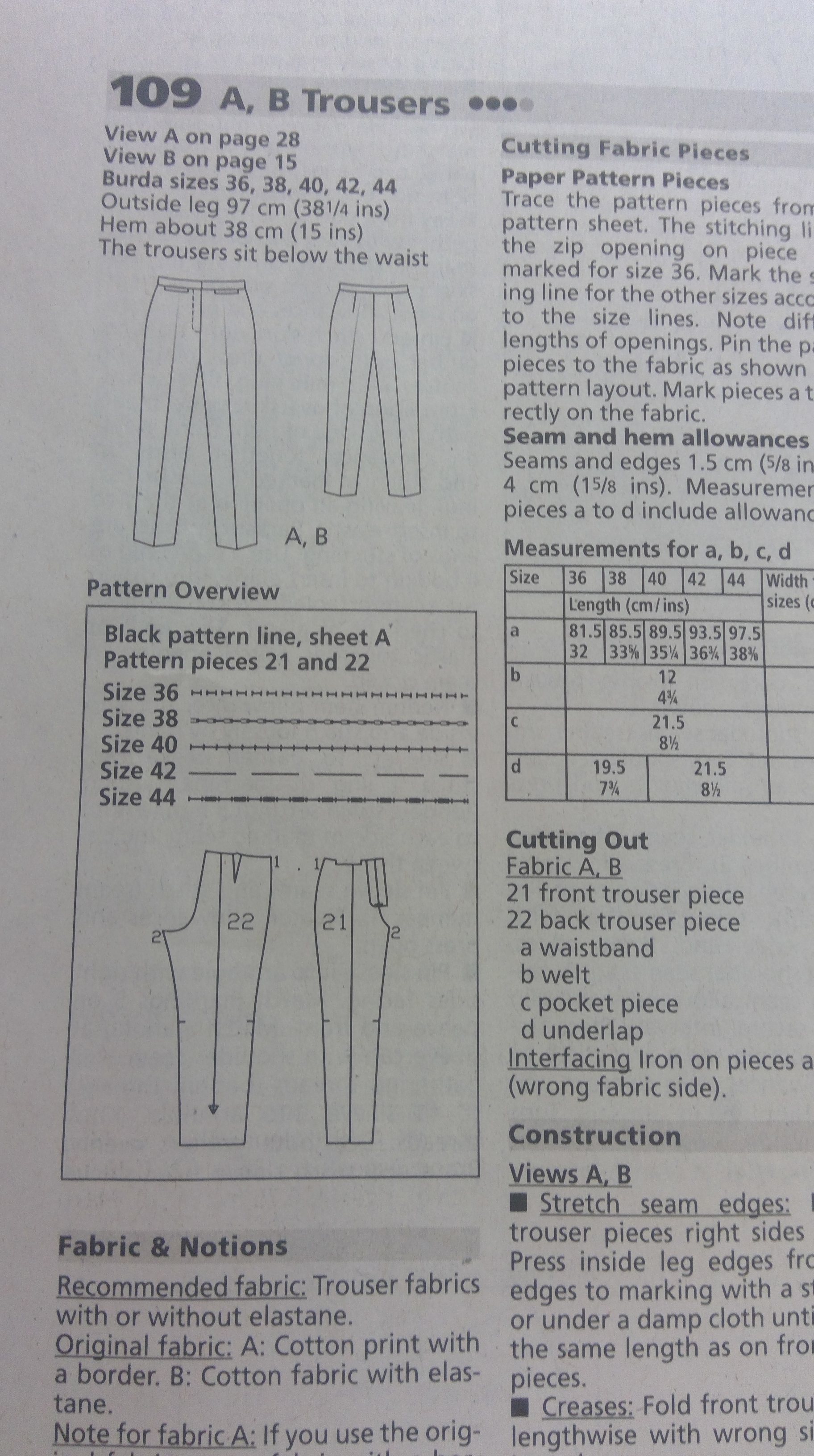 The waist size meant I would have enough fabric for my hips, and the wool was a lovely quality. I am always surprised by how big the pockets are in mens trousers. I place a pattern on top to check if there would be enough fabric, and there was for slim cut ‘ankle grazer’ – Burda trousers from the September issue.