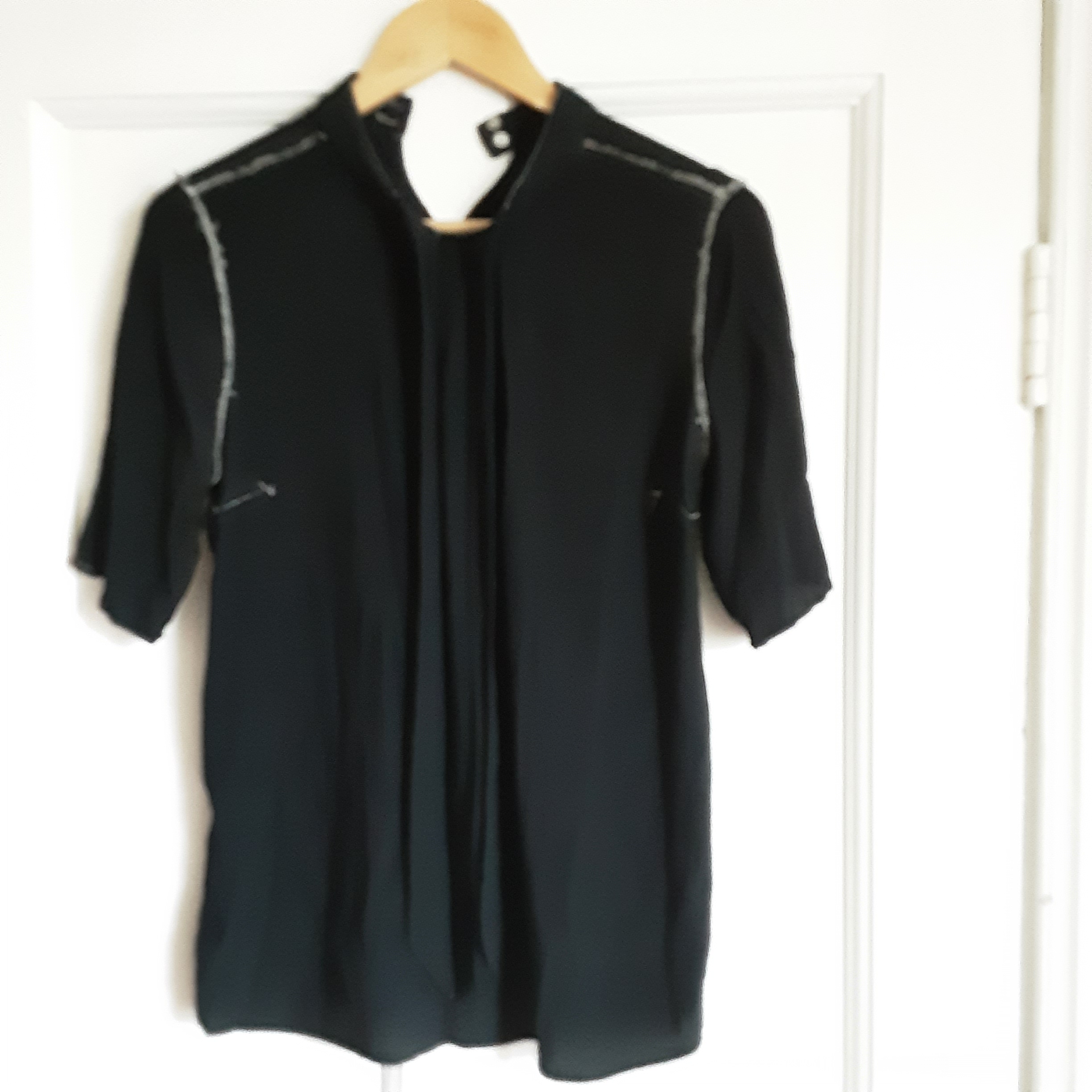 and finally, I had to machine dye some tee shirts (as husband seems to get printer toner on his tee shirts very easily)…. so I put in a cream viscose blouse which I got in the charity shop. I completely forgot a before photo – the blouse is lovely, but cream looks awful with my grey hair. It dyed well of course, but I forgot about the threads, and as the blouse was sewn with a chain stitch machine, the white seams showed when the blouse was worn/stretched. I unpicked all the seams and re-sewed with black. The button holes of course could not be re-sewed…..so I used a black sharpie for the outside (the inside threads were not sharpied)