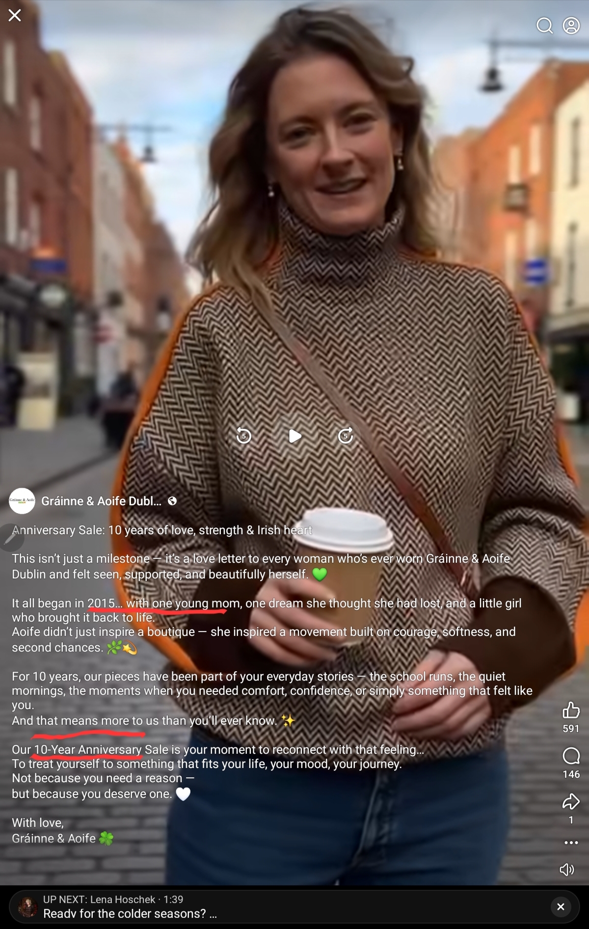 In this one – it’s a Grainne and Aoife Dublin… there was a clip on Facebook of a woman wearing the sweater in a red-brick street, so I clicked on the link – to get to the website and when I saw the site …I was a bit intrigued, how had I not come across this 10 year old business before – there was a even a backstory about Grainne and baby Aoife. Who can be cynical when you are looking at a photo of a mother feeding a baby. And of course, any consumer would think that they are somehow supporting this mother and child (and maybe even little Aoife’s education) by buying a sweater…. But when searching for the business address in Dublin, there is none, there aren’t direct contact details either (but they do take CVs😊)… also missing is the fabric composition with all garments, all very suspect, so its only when you go through the terms and conditions, theres the rub…..their warehouse is in China and postage for returns fees paid by buyer.