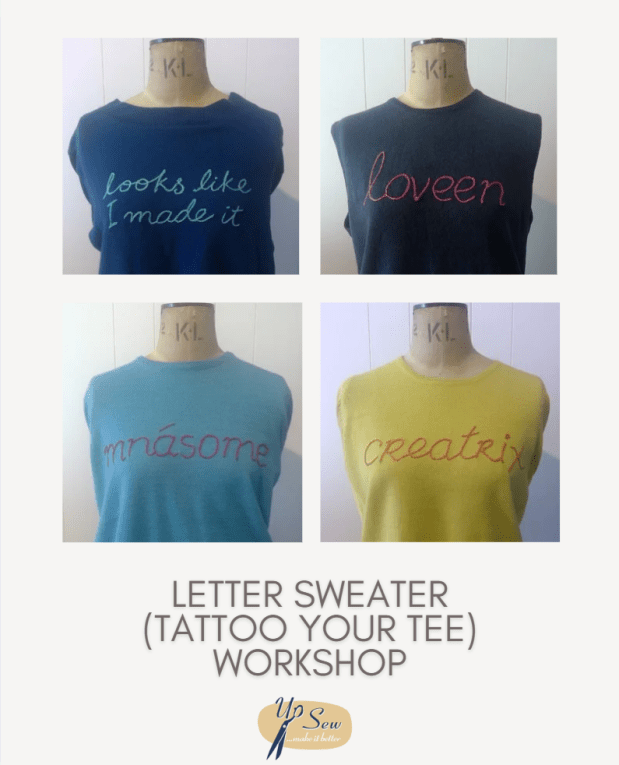 Do you have a phrase you would like to embroider on a tee-shirt or sweater? This is a hands-on embroidery session, where you’ll learn the basics of chain stitch on a tee-shirt or sweater—perfect for easy removal if needed.
