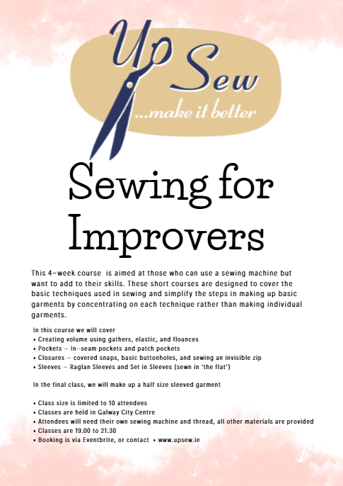 Sewing for Improvers Share this: Click to share on Facebook (Opens in new window) Facebook Click to email a link to a friend (Opens in new window) Email Click to share on Pinterest (Opens in new window) Pinterest Click to share on Threads (Opens in new window) Threads Click to share on WhatsApp (Opens in new window) WhatsApp More Click to share on Reddit (Opens in new window) Reddit Like Loading...
